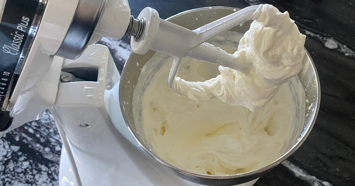 - To prepare the whipped cream, use a handheld or standing mixer with a whisk attachment. Whip the cream with the sugar and 1 teaspoon almond extract for about 4 minutes or until medium peaks form (or basically until the whipped cream is the right consistency to top a dessert).