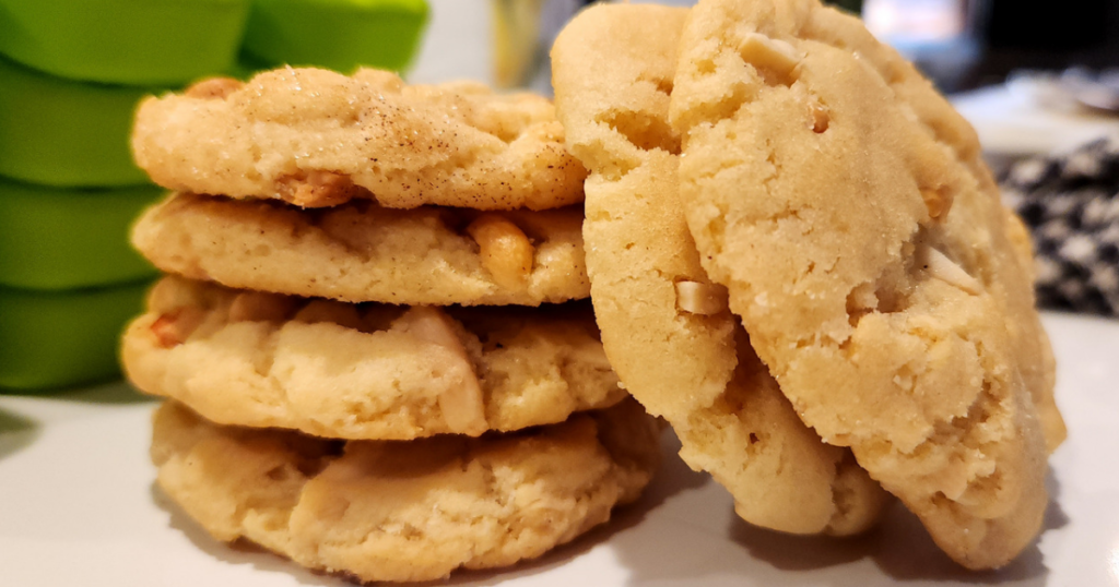 This crunchy peanut almond Snickerdoodle recipe is a fun twist on the traditional recipe. It starts with a classic buttery, cinnamony Snickerdoodle recipe and adds finely chopped almonds and peanuts for an extra nutty crunch! They are a nut lover’s dream!