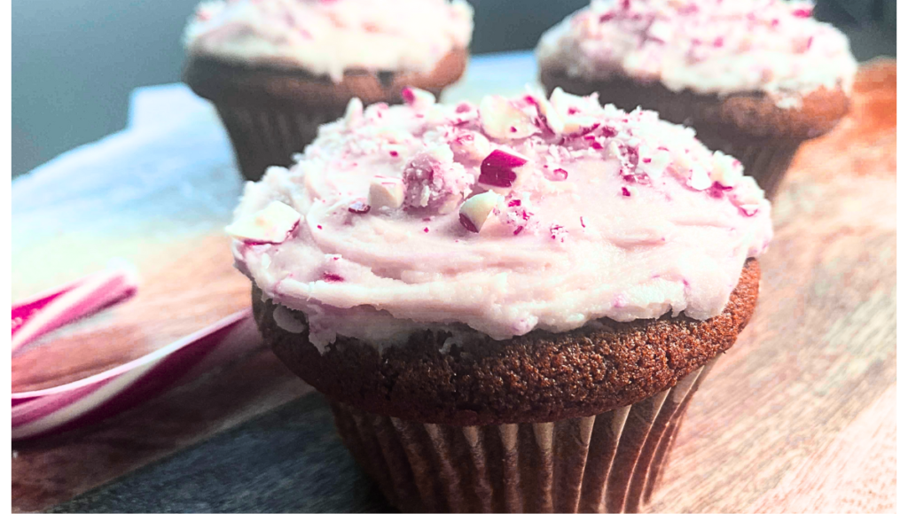Gingerbread Cupcakes with Candy Cane Frosting