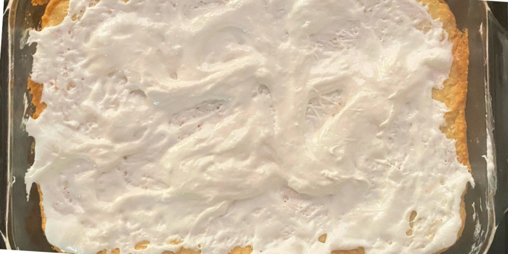 These bars start with a soft, buttery sugar cookie base, then get smothered in gooey, melted marshmallows that create a luscious layer of sweetness. Finished with bits of cookie crumble gently pressed on top, every bite is a perfect mix of tender, chewy, and golden-toasty — proving sugar cookies can be anything but plain.