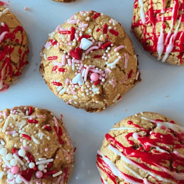 Big & Chewy Valentine’s Sugar Cookies (gluten-free) are jumbo sized, buttery and chewy, with a lightly crispy outside and extra chewy inside, then topped with festive Valentine’s Day decorations. I haven’t met a cookie I didn’t like, but this gluten-free sugar cookie recipe is one of my favorite sugar cookie recipes. They have the perfect…